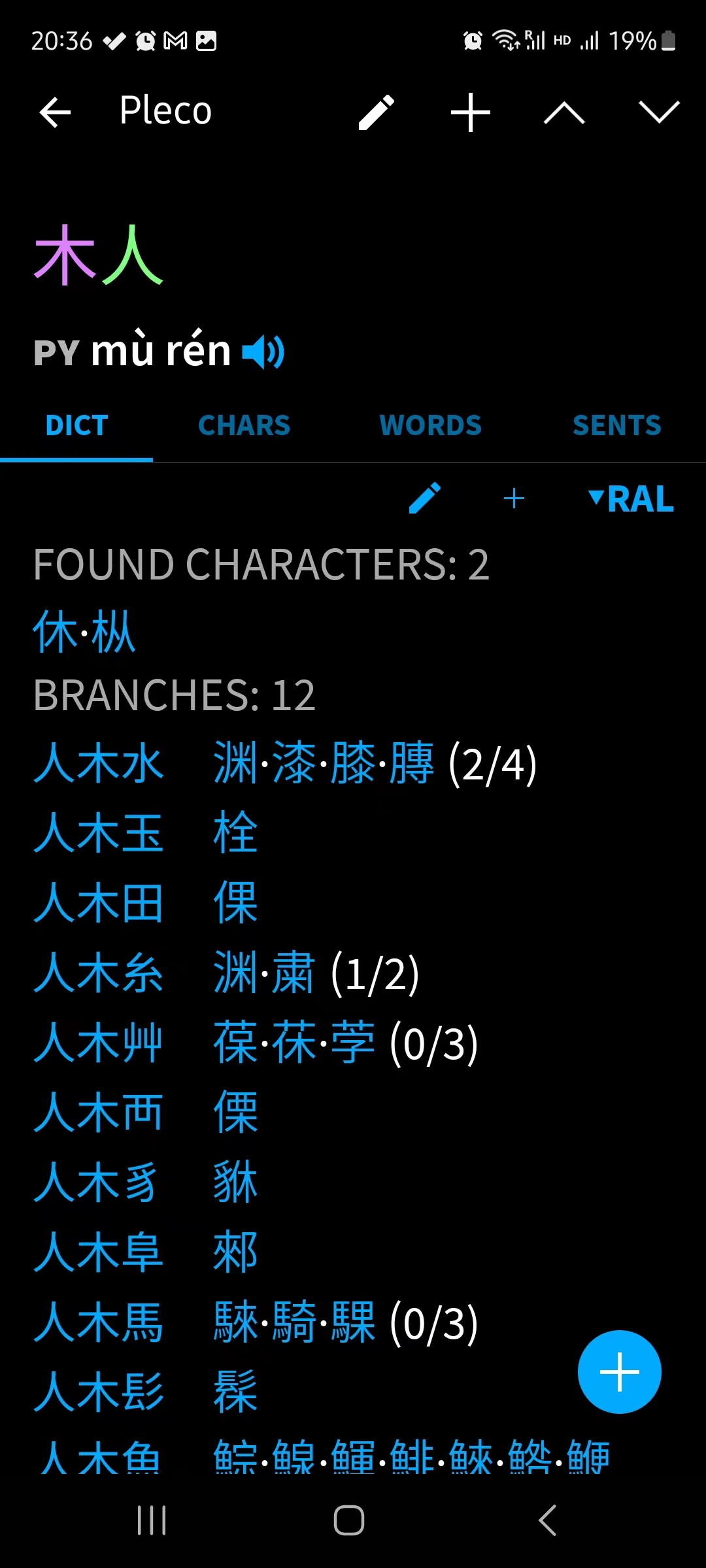 - Chinese Radical Lookup (RAL) dictionary that allows you to find the Chinese characters from component radicals. You can search by choosing on screen or by searching the radical names (~150,000 combinations): You can search by browsing graphically or keying in radical names