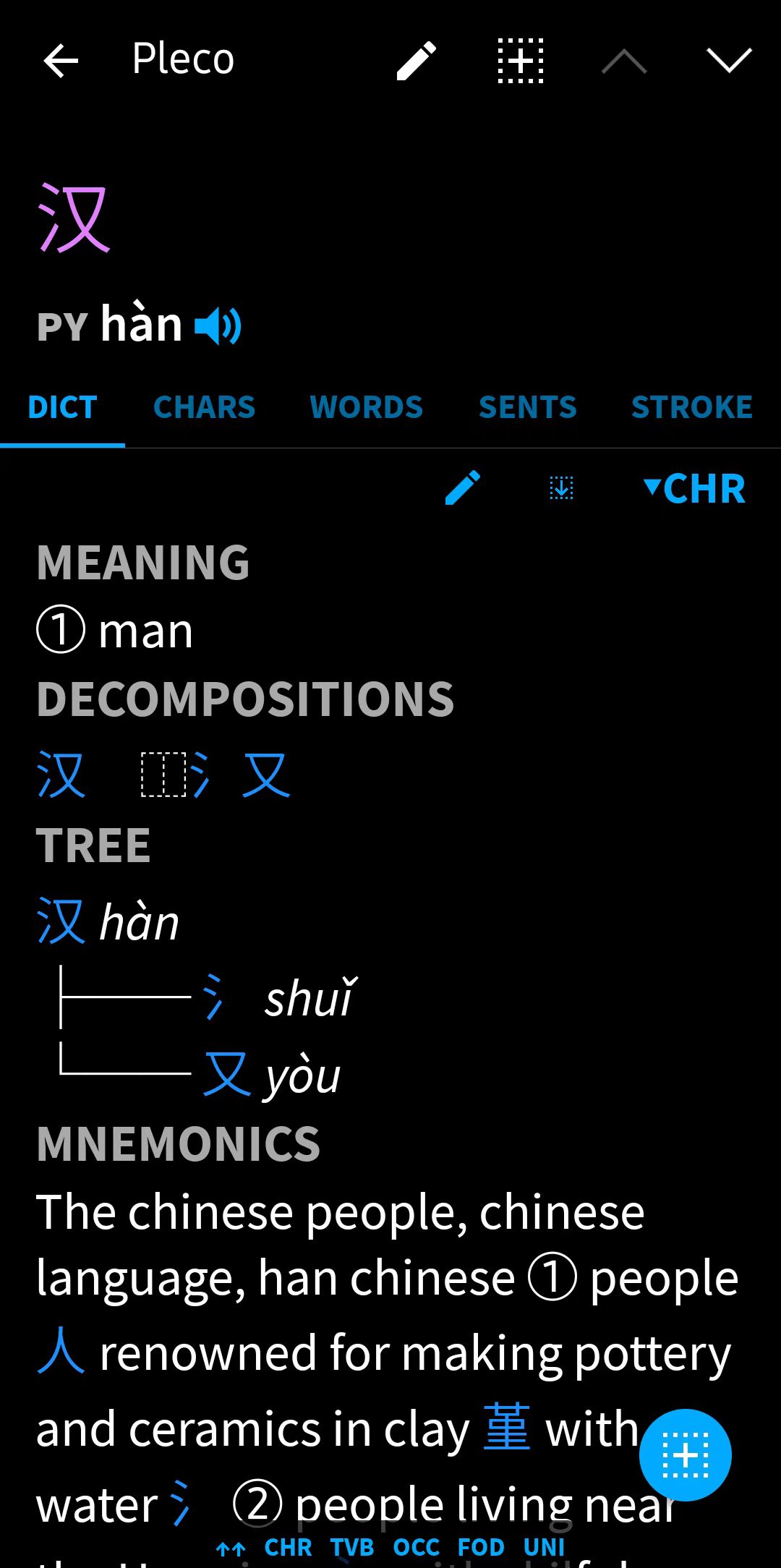 - Chinese Character Component Dictionary (CHAR) allows you to see the components that make up a Chinese character (about 12,000 headwords)