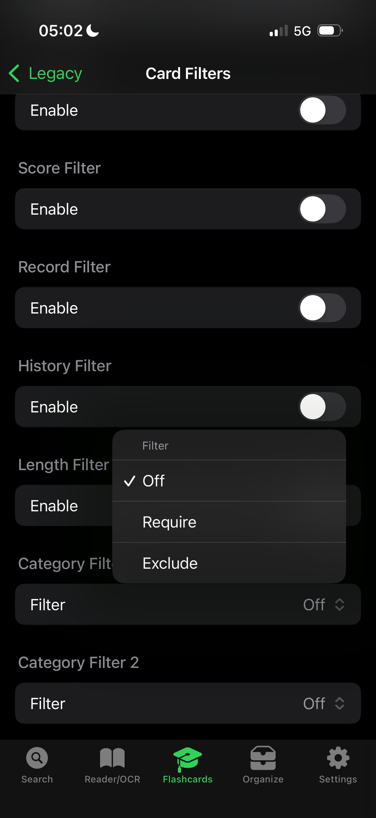 B) Filter the flashcard test to only test me on words that I'm not already studying in a different test.