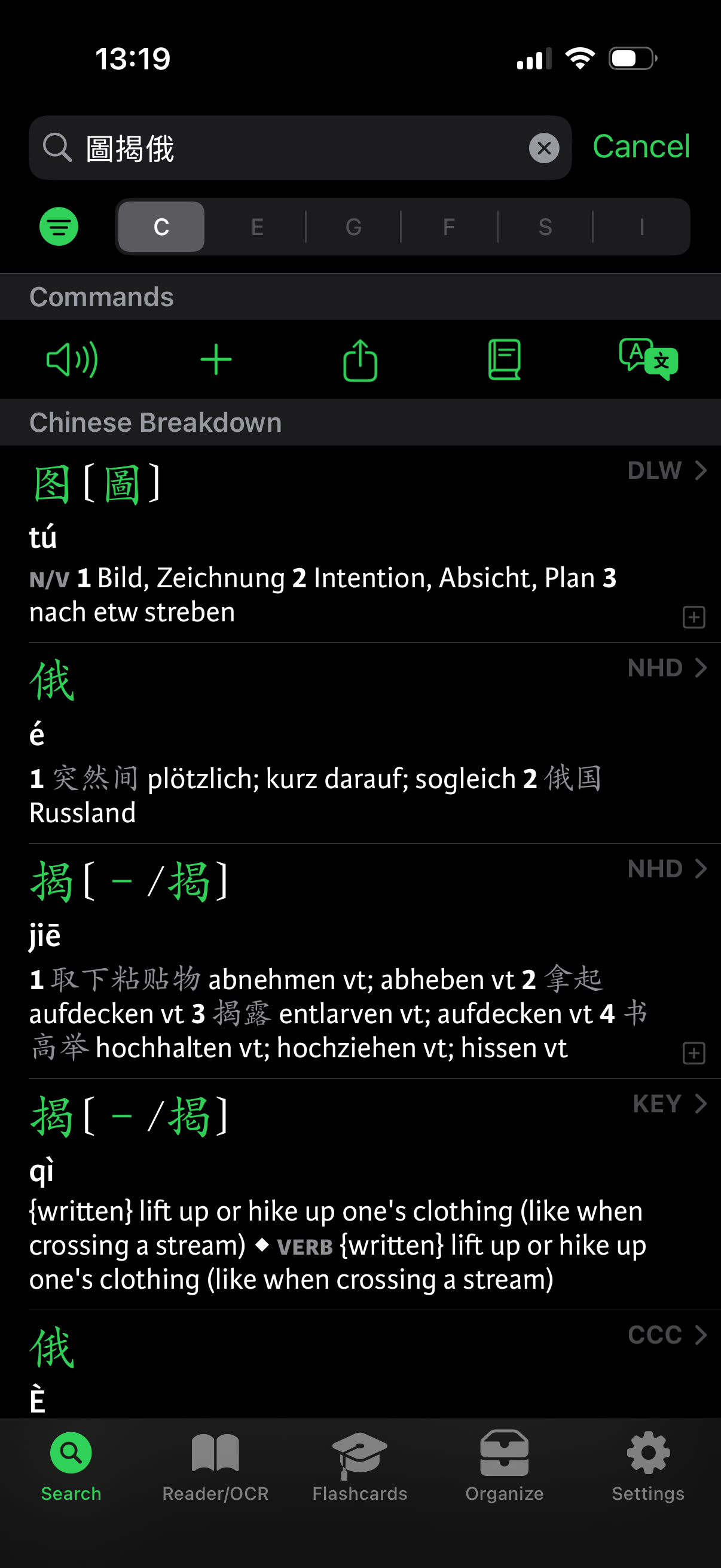 Order entered: 圖揭俄 Order in Chinese Breakdown: 圖俄揭